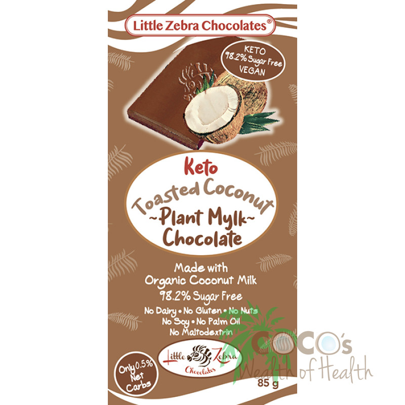 Keto Plant Mylk Chocolate Toasted Coconut 85g by LITTLE ZEBRA CHOCOLATES