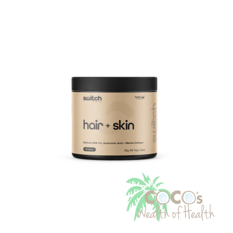Hair & Skin Capsules - GHK-Cu, Hyaluronic Acid + Marine Collagen (60) by SWITCH NUTRITION