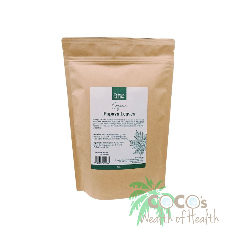 Organic Papaya Leaves 100g by GRASSES OF LIFE