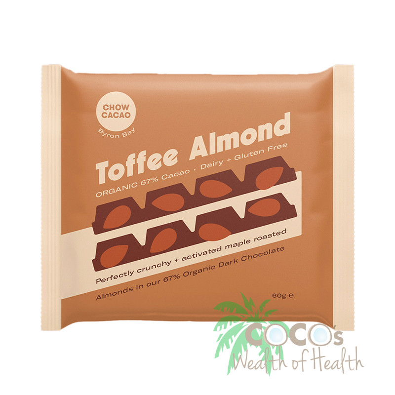 Toffee Almond Dark Chocolate Block 60g by CHOW CACAO
